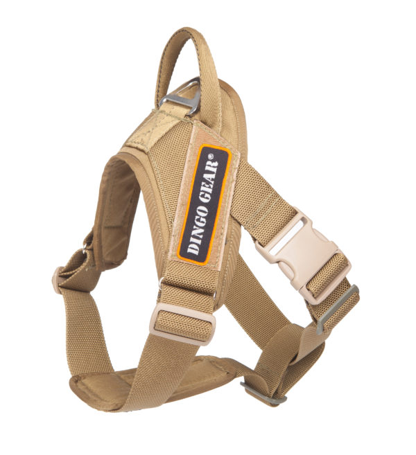 Completa com suspensórios nos lados, com inscrição DINGO GEAR anexada com velcro.
