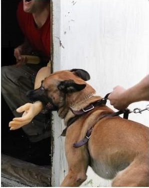 Este tipo de produto permite treinar os cães de intervenção em condições quase reais. O cão terá a sensação de morder um braço real.