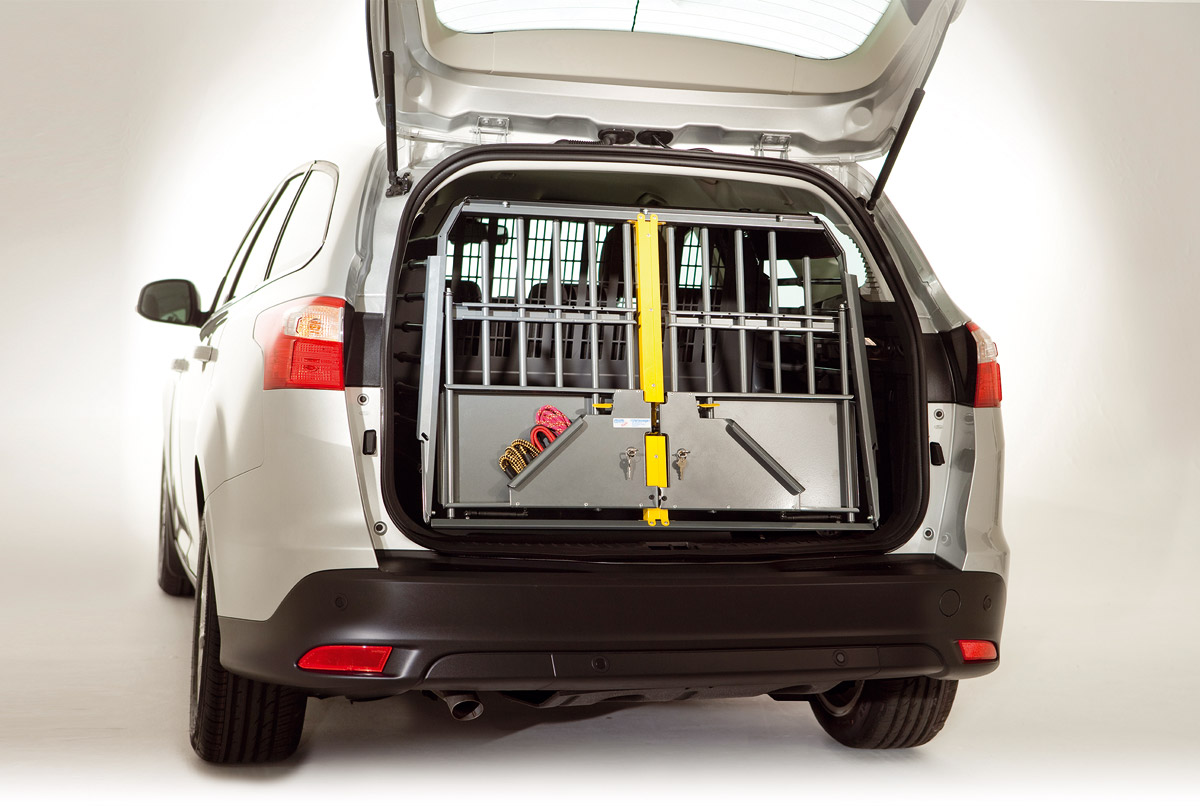 A Variocage é a caixa mais segura e inovadora do mercado. Testada em testes de colisão, incorpora uma tecnologia exclusiva de zona de deformação controlada que aumenta a segurança de cães e passageiros nos bancos traseiros no caso de uma colisão traseira.
