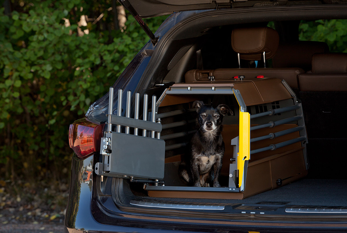 A Variocage é a caixa mais segura e inovadora do mercado. Testada em testes de colisão, incorpora uma tecnologia exclusiva de zona de deformação controlada que aumenta a segurança de cães e passageiros nos bancos traseiros no caso de uma colisão traseira.