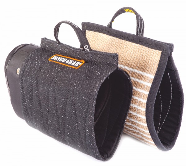 Capa de juta reforçada com polipropileno para uma manga curta DŻEFI para treino de cães jovens e adultos. A juta garante durabilidade e, graças às suas propriedades, permite que o cão morde no local certo, sem risco de danos. Garante segurança para o cão, sem risco de danos. A pega é feita de fita larga e macia reforçada com borracha, garante confiança e conforto ao segurar a manga Testado e aprovado por treinadores profissionais.