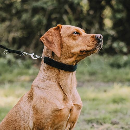 Feita de nylon de alta qualidade e equipada com práticos fechos de velcro que se prendem nos elos da coleira.