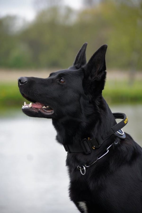 A coleira super forte com pega de polipropileno COBRA é o equipamento perfeito para um pastor alemão ou outro cão grande de treino K9 . Garante segurança e durabilidade nas condições mais extremas.