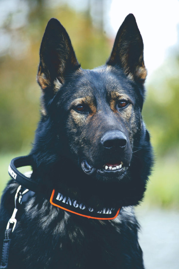 Uma inscrição DINGO GEAR é anexada a coleira.