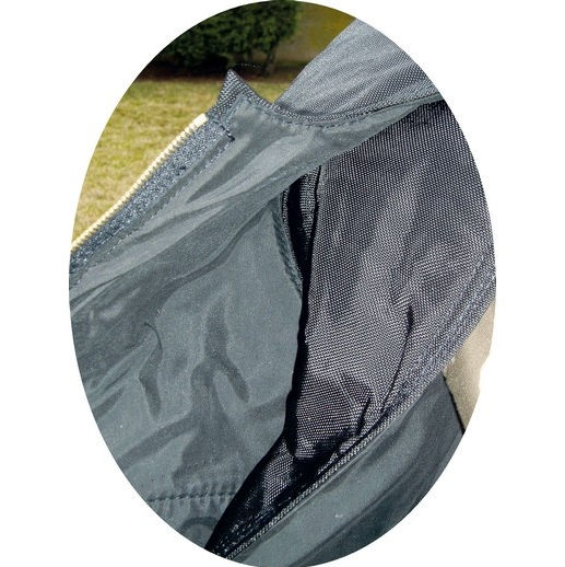 O fato com Kevlar e Corduro permite grande proteção ao nivel do peito e na parte superior das costas.
