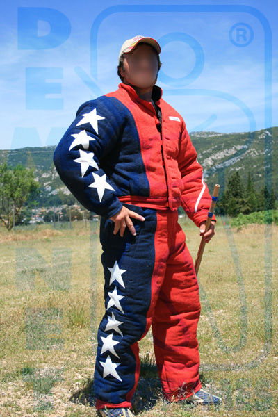 Fato de treino - oferece mais proteção, mas com menos mobilidade, um fato de treino em geral ideal para o trabalho policial com proteção total, ideal para figurantes menos experientes ou se você treinar com vários cães, dando muitas mordidas.