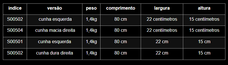 - As capas dos braços são de polipropileno envoltas por uma tira de couro, permitindo o ajuste e estabilização adequados