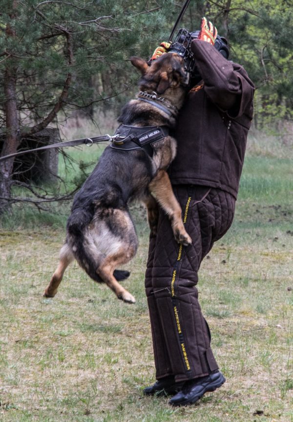 Máscara de proteção muito leve e durável, que protege o treinador contra uma mordida direta ou um golpe no rosto. Usado durante os treinos de cães em condição de defesa, ataque e IGP. A máscara foi feita à mão, com os mínimos detalhes, para que os usuários obtenham mais proteção durante o exercício.