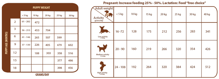 Receita com uma relação qualidade-preço excelente para raças de trabalho, cachorros /juniors de raças pequenas e médias, fêmeas prenhas ou em amamentação e cães em geral que possam ter um estômago sensível. É ao mesmo tempo de digestão fácil e valor nutritivo alto e uma fonte de energia sustentável para o cão de trabalho ou o cão desportivo.