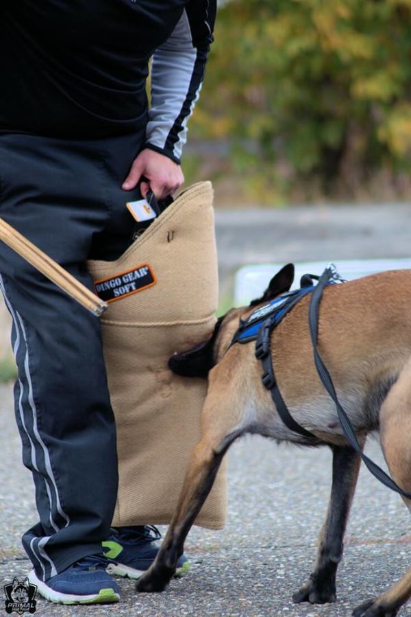 - Os materiais utilizados absorvem o impacto do cão atacante