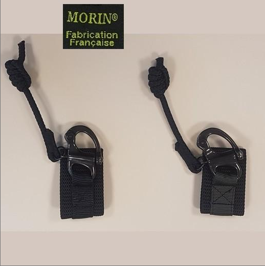 Presilha de cinta em nylon de 50 mm com mosquetão de libertação rápida.