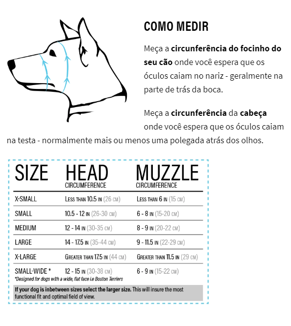 1. Um ajuste correto manterá os óculos bem posicionados tornando-os confortáveis para o seu cão.