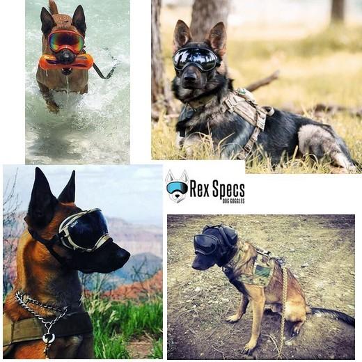 O design do Rex Specs K9 é optimizado para o cão de trabalho. Eles são usados por treinadores de cães de proteção pessoal, departamentos de Defesa dos Estados Unidos, caçadores e em muitas outras aplicações K9 em operação. A Rex Specs recebeu a aprovação dos profissionais da K9 por sua eficácia em muitas situações diferentes.