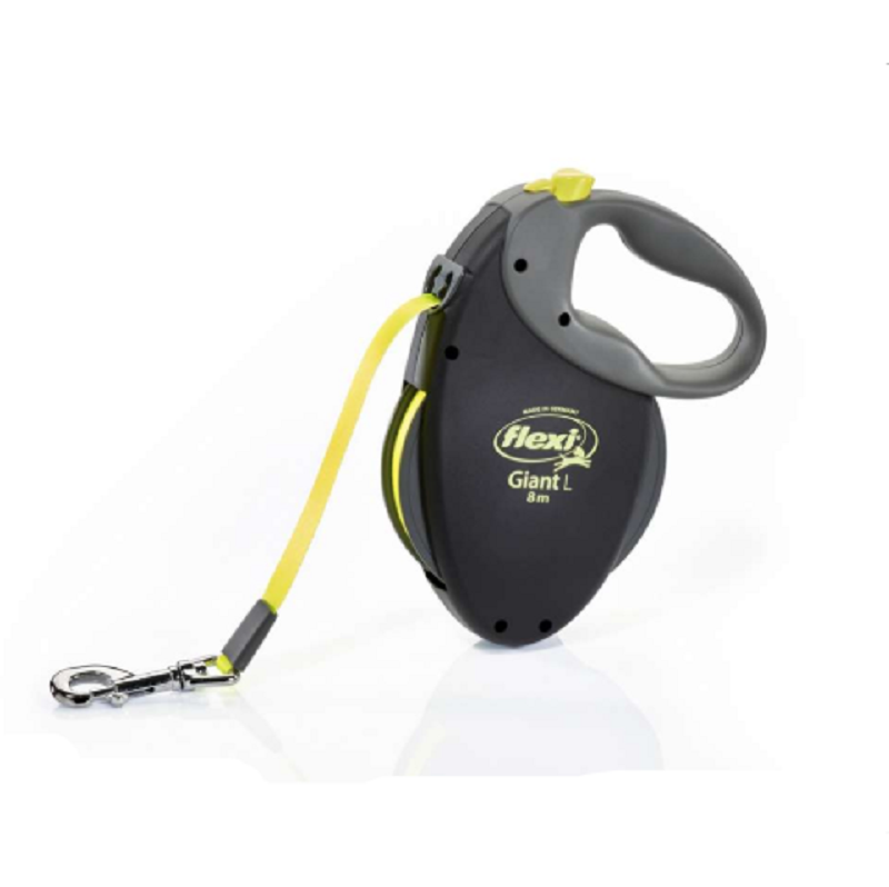 As trelas estão constantemente sob uma ligeira tensão. Assim, é possível parar o cão a qualquer momento, premindo o botão de travagem e controlando-o em segurança. Ao premir o botão e dar pequenos puxões na trela, estará a fazer com que o seu cão regresse ao seu lado. A função de travão permanente permite-lhe fixar a trela à medida pretendida. Para saber mais sobre o manuseio e segurança das trelas flexi, consulte as instruções de utilização.